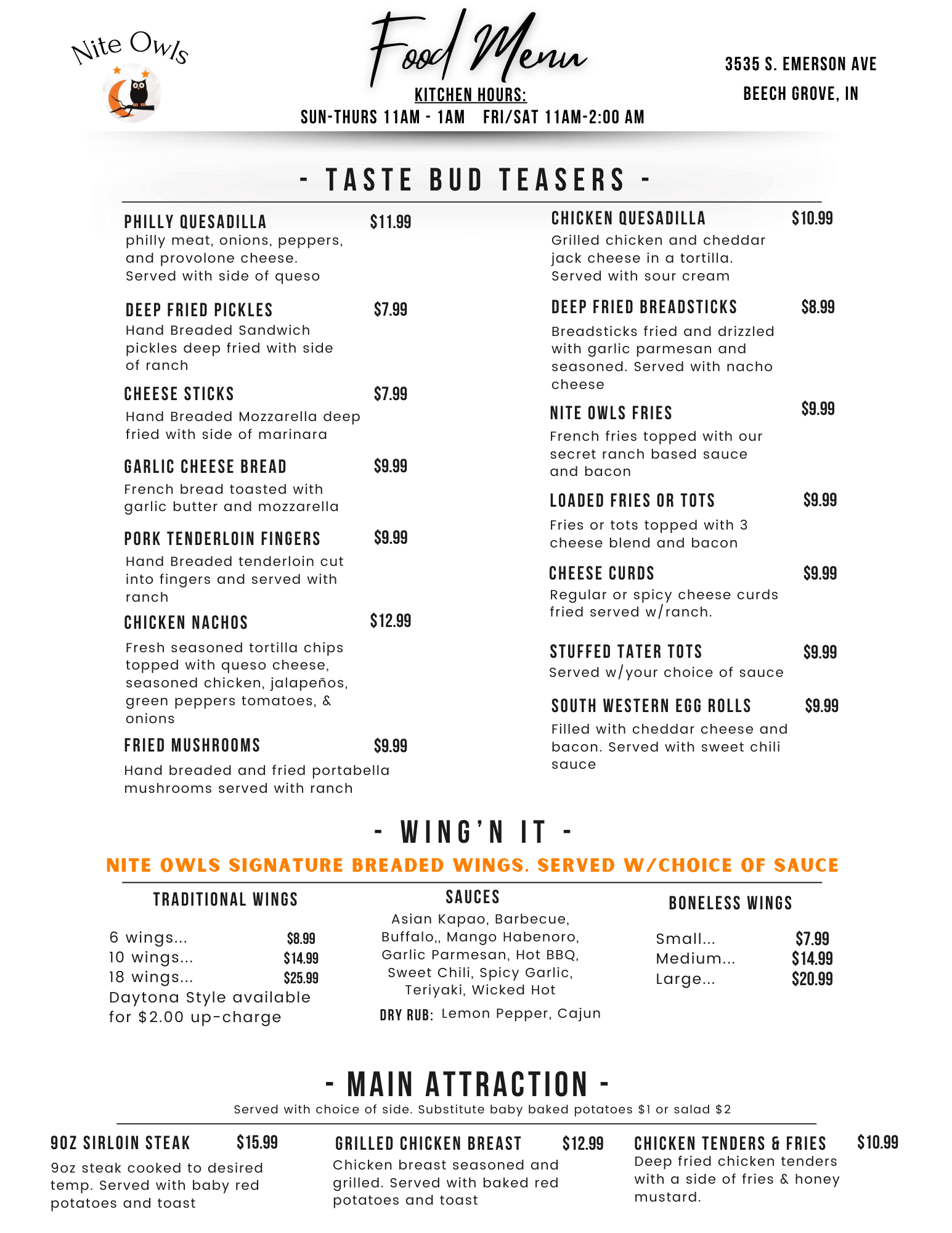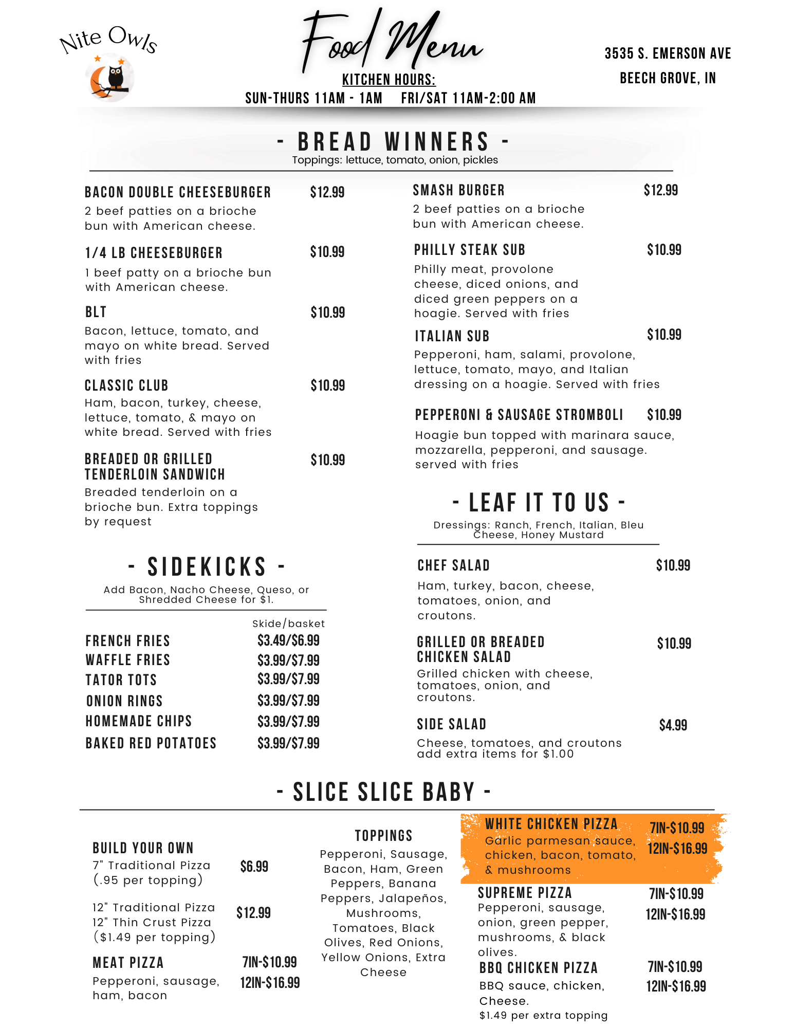 Prices on third party services may differ from those listed on our website or in-house menu.